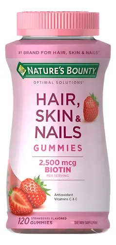 Nature Bounty - Hair Skin & Nails. Vitaminas para Pelo Piel y uñas 2500mcg 120 gomitas cantidad